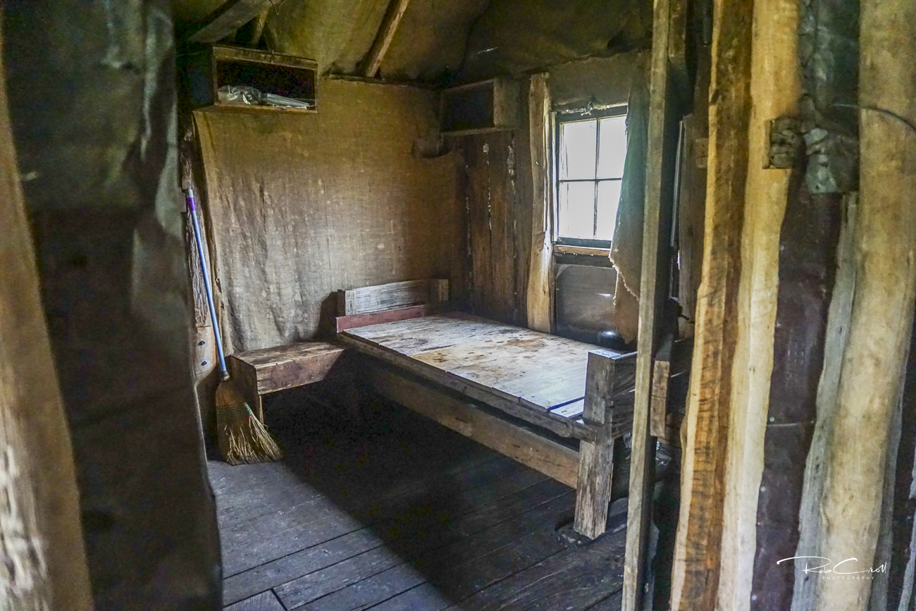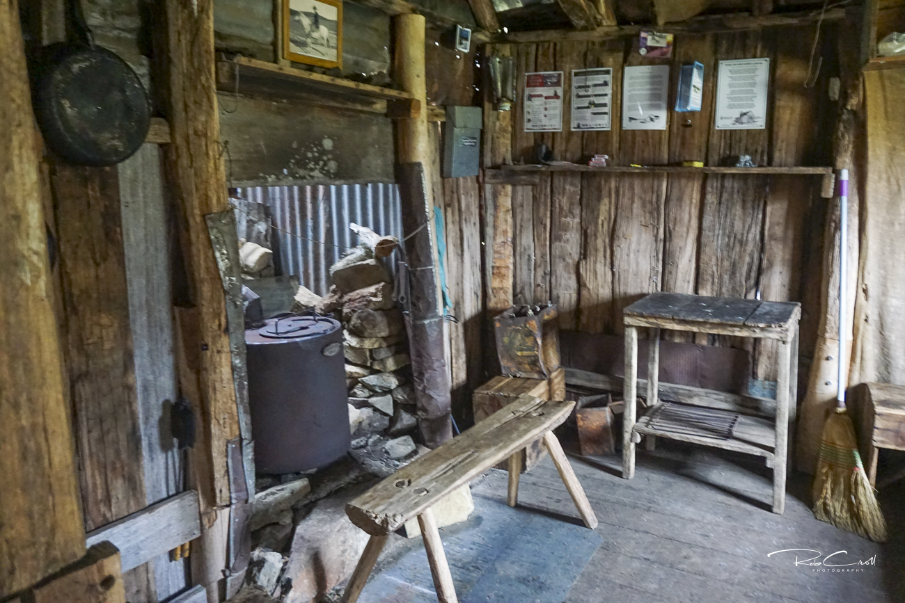 The hut was constructed using salvaged materials, including slab walls, corrugated iron roofing, and even flattened five-gallon tins. A unique detail was the use of leather washers under every nail, a feature so distinctive that restoration teams replicated it during later rebuilds. For many years—until around 1981—a box of live dynamite was reportedly stored under one of the bunks, adding a touch of folklore to its already colorful history.