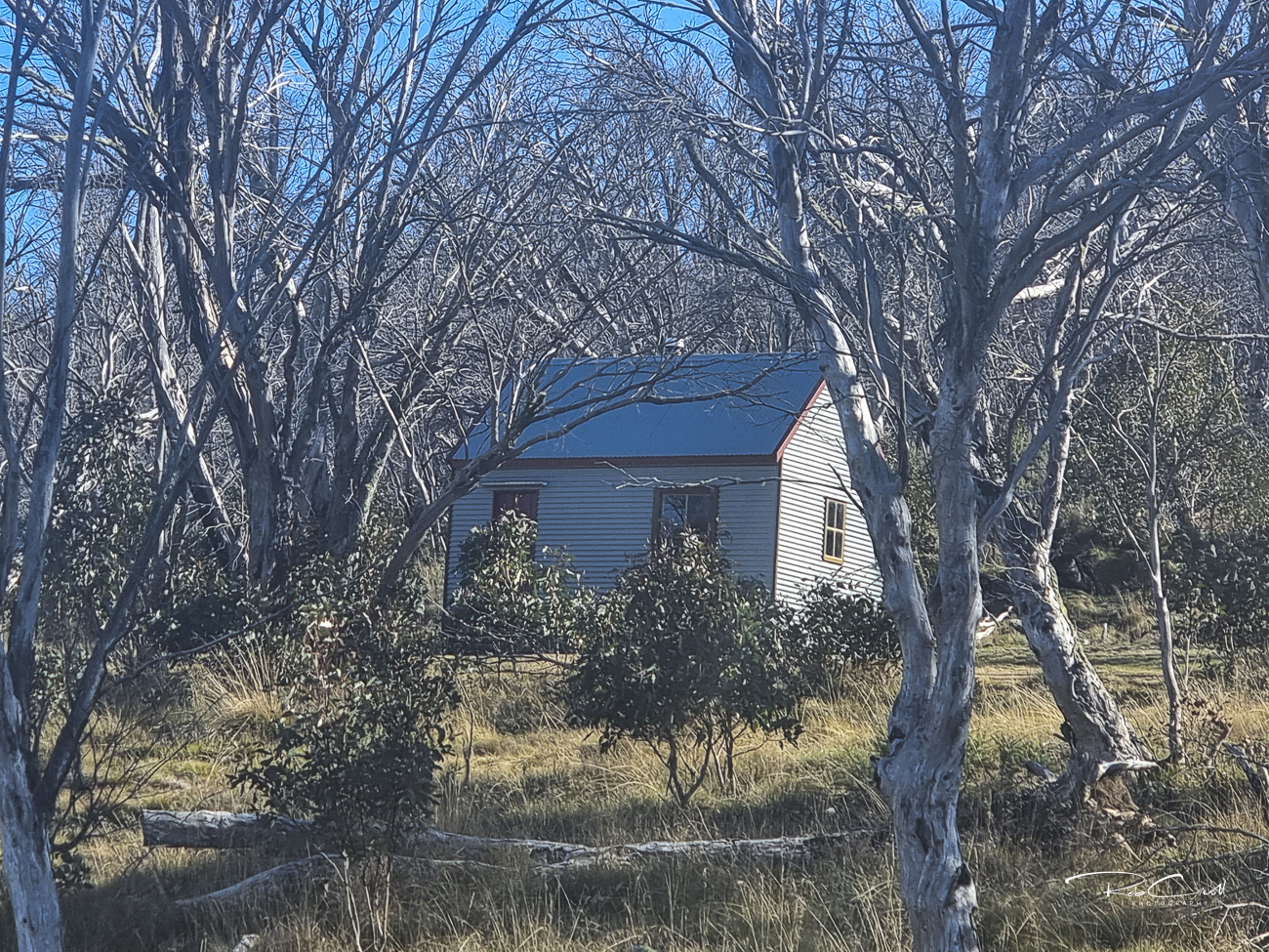 This hut is one of the most pleasantly situated huts I have visited. On the south-eastern slope of the spur which ends in the Vale T.S. (5733 ft.) it commands a beautiful view of the Happy Jacks with Spencers Peak in the far south-eastern corner. The old Farm Ridge telephone line runs across the valley 400 yards from the hut and the small wooded knolls, so typical of the Happy Jack Valley, make a beautiful view from the hut’s open verandah. (Telfer 1936).