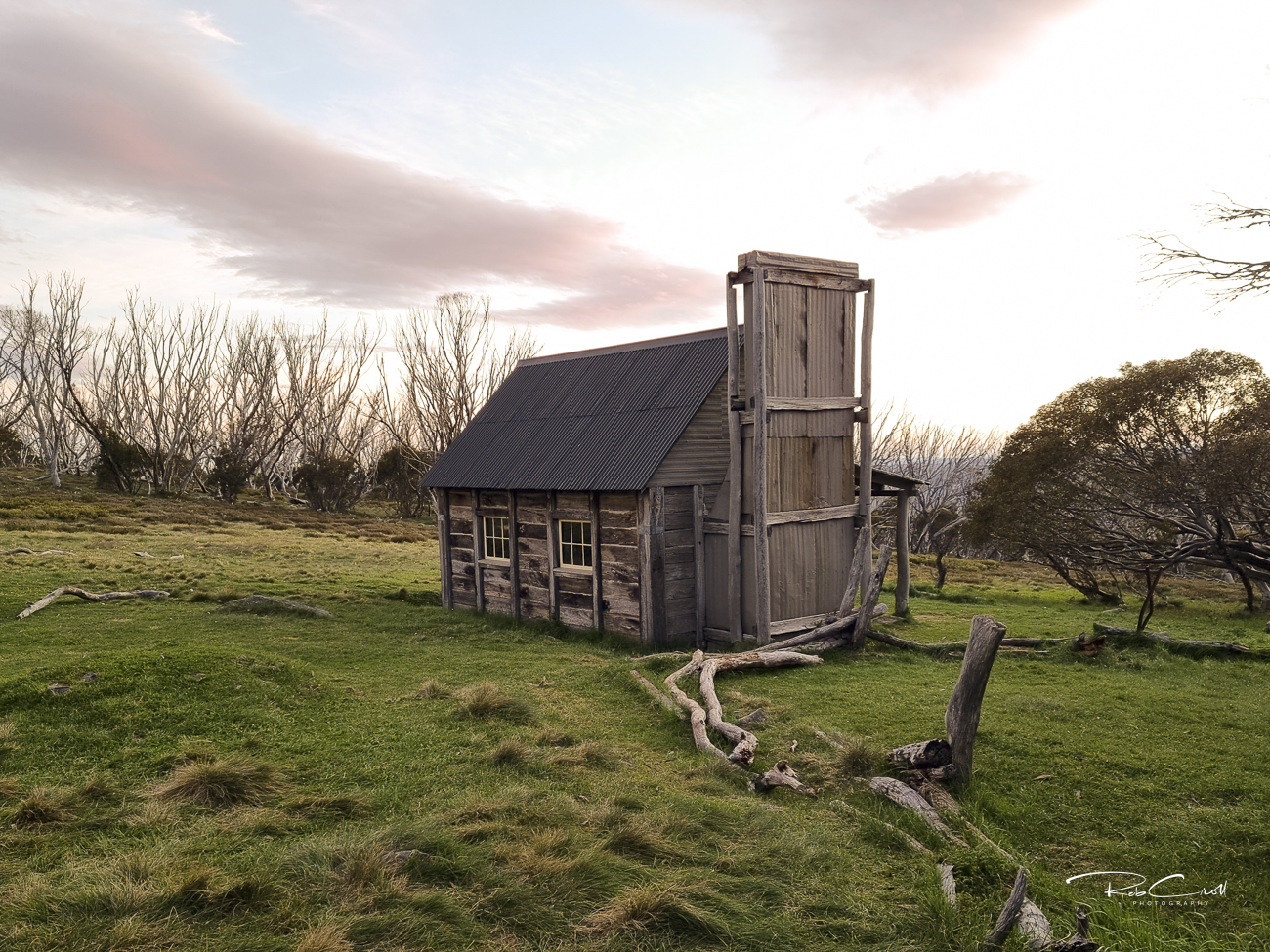 Fitzgerald Hut was originally built in 1903 by George Silas Fitzgerald, a cattleman from Shannon Vale near Omeo. The hut served as a base for summer grazing and was later offered as an “open house” to bushwalkers, including the Melbourne Women’s Walking Club. The original structure was made of woollybutt palings with a shingle roof, later covered in iron.