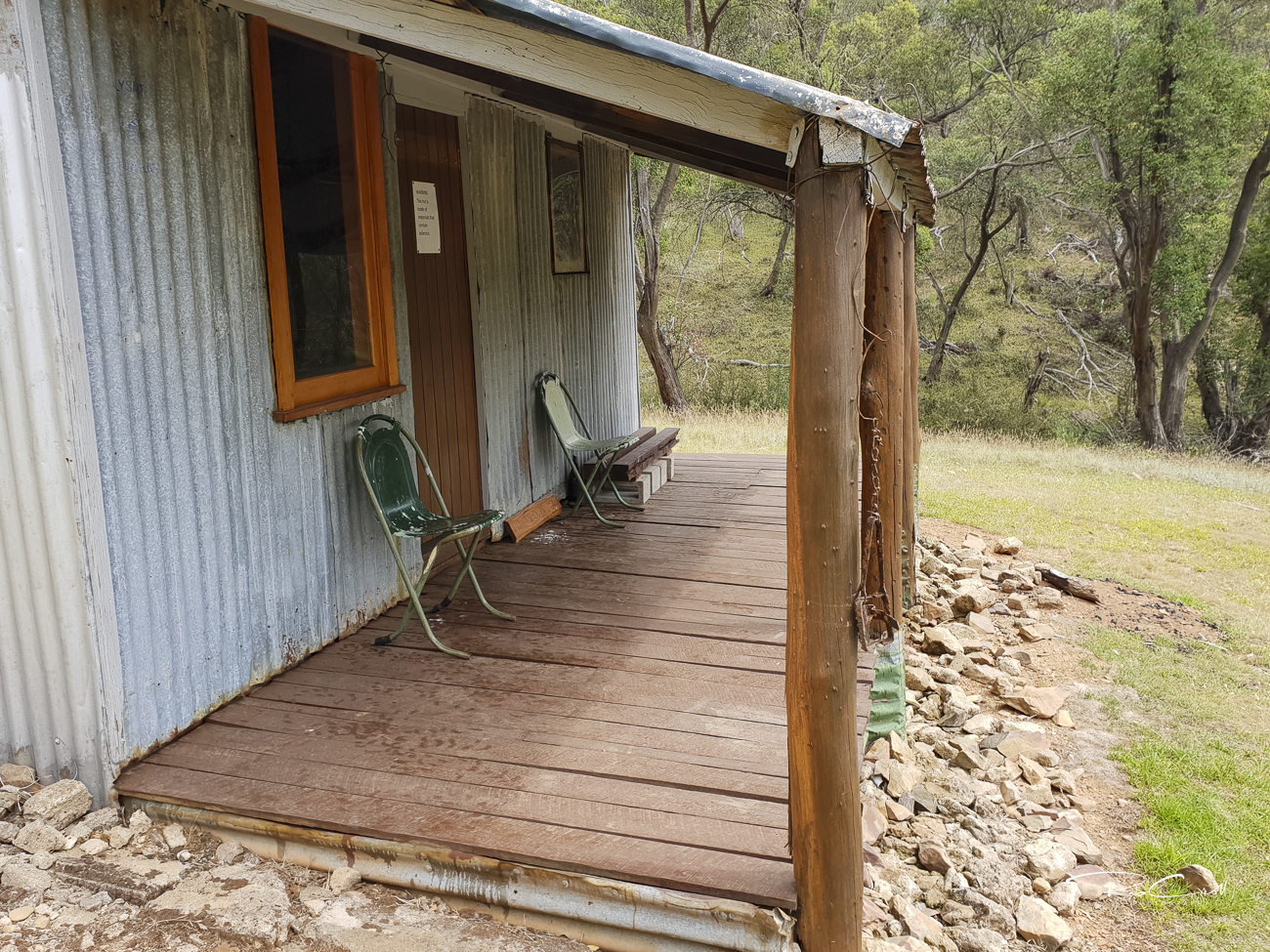 The hut is dry and weatherproof, with basic furnishings and a gambrel still hanging on the wall — once used for dressing sheep.